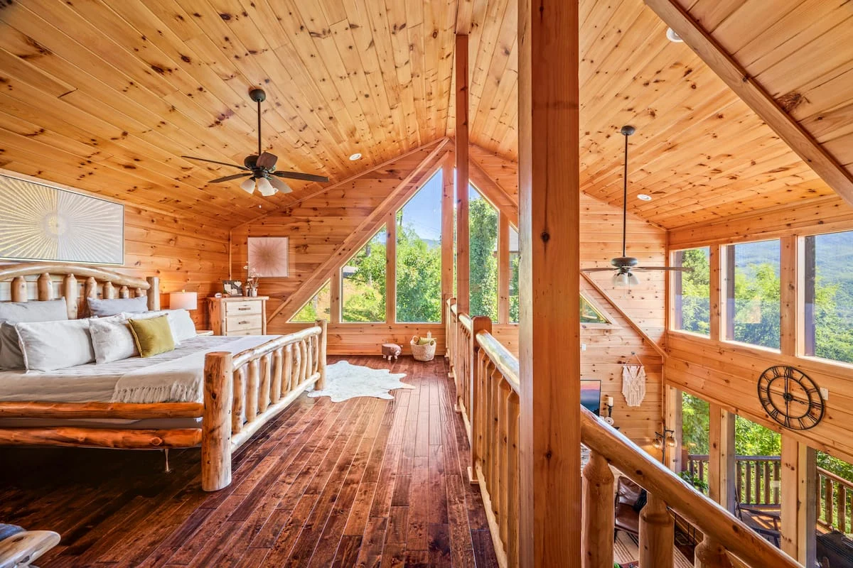 Once you arrive you may never want to leave! Amazing views, and a great location. This is the perfect 3 bedroom cabin (with a bonus king bed and a futon in the large loft area). The cabin can accommodate a total of 12 guests (each bedroom has a spectacular view of the Smoky Mountains) There is also a sleeper sofa in the living room if needed.
