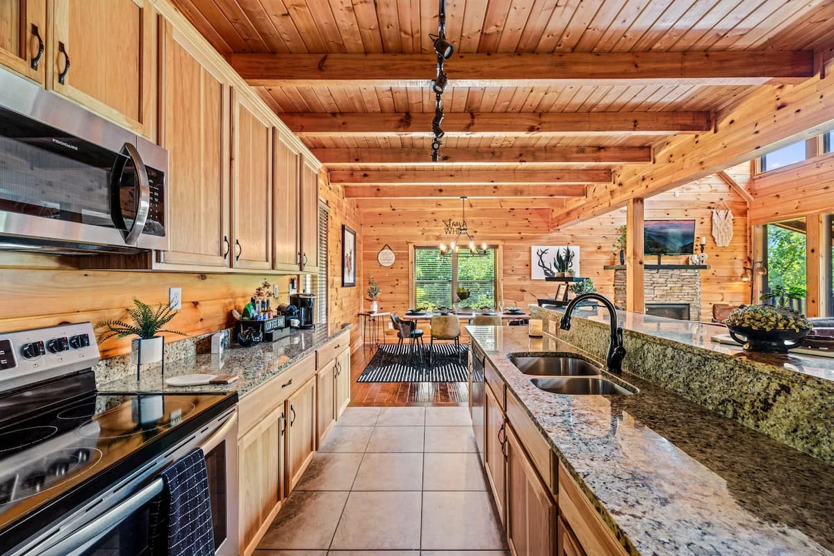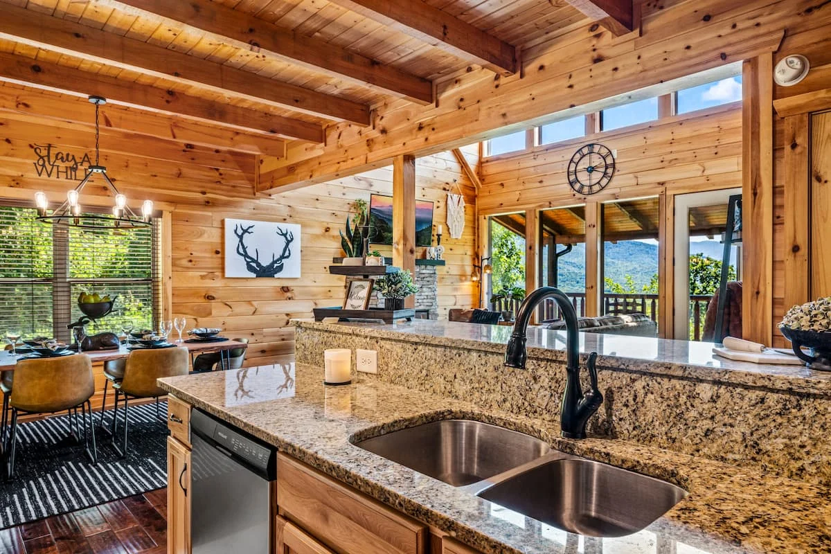 Savor your meals in a fully equipped kitchen with granite counter tops. Relax and enjoy your morning coffee and private views of the mountains while gently rocking under the covered deck. Life is good!